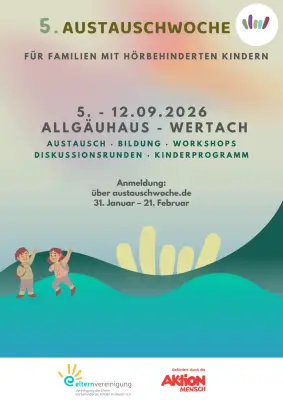 Es ist wieder so weit: Die Austauschwoche für Familien mit hörbehinderten Kindern findet dieses Jahr bereits zum 5. Mal vom 05. bis 12.09.2026 im Allgäuhaus in Wertach statt. Mit der Austauschwoche soll ein Raum geschaffen werden, in dem sich Eltern hörbehinderter Kinder begegnen, austauschen und gegenseitig stärken können – damit Familien sich unterstützt fühlen und gemeinsam wachsen. […]